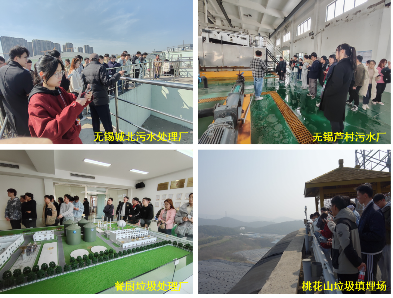 在无锡市桃花山垃圾渗滤液处理场、无锡市桃花山垃圾填埋场,同学们见识了垃圾填埋处理的相关的国家规范和新型复合处理方法,深入了解了垃圾填埋的过程步骤以及无害化处理理念;参观学习了气浮系统-生物脱氮-纳滤-反渗透全流程垃圾渗滤液达标排放处理工艺及原理。