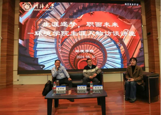 讲座伊始,王大伟教授以十年之路向同学们分享了自身的学习和工作经验,提出当今社会风向时刻变化,环保政策、市场需求也存在众多不确定性。作为当代大学生应对当今多变的形势,要做到能吃苦、肯奋斗。雷修明校友则分析到要“预”见适合自己的职业偏好,需要对自身性格以及就业环境有足够清晰的认知。性格不同,往往对于职业的偏好也各不相同。对于就业市场形势的时势洞悉也同样有助于职业规划。讲座的最后,访谈嘉宾就同学们的问题进行一一解答,并为同学们未来的职业规划指明方向,引导同学们在求学之路上不断前行。