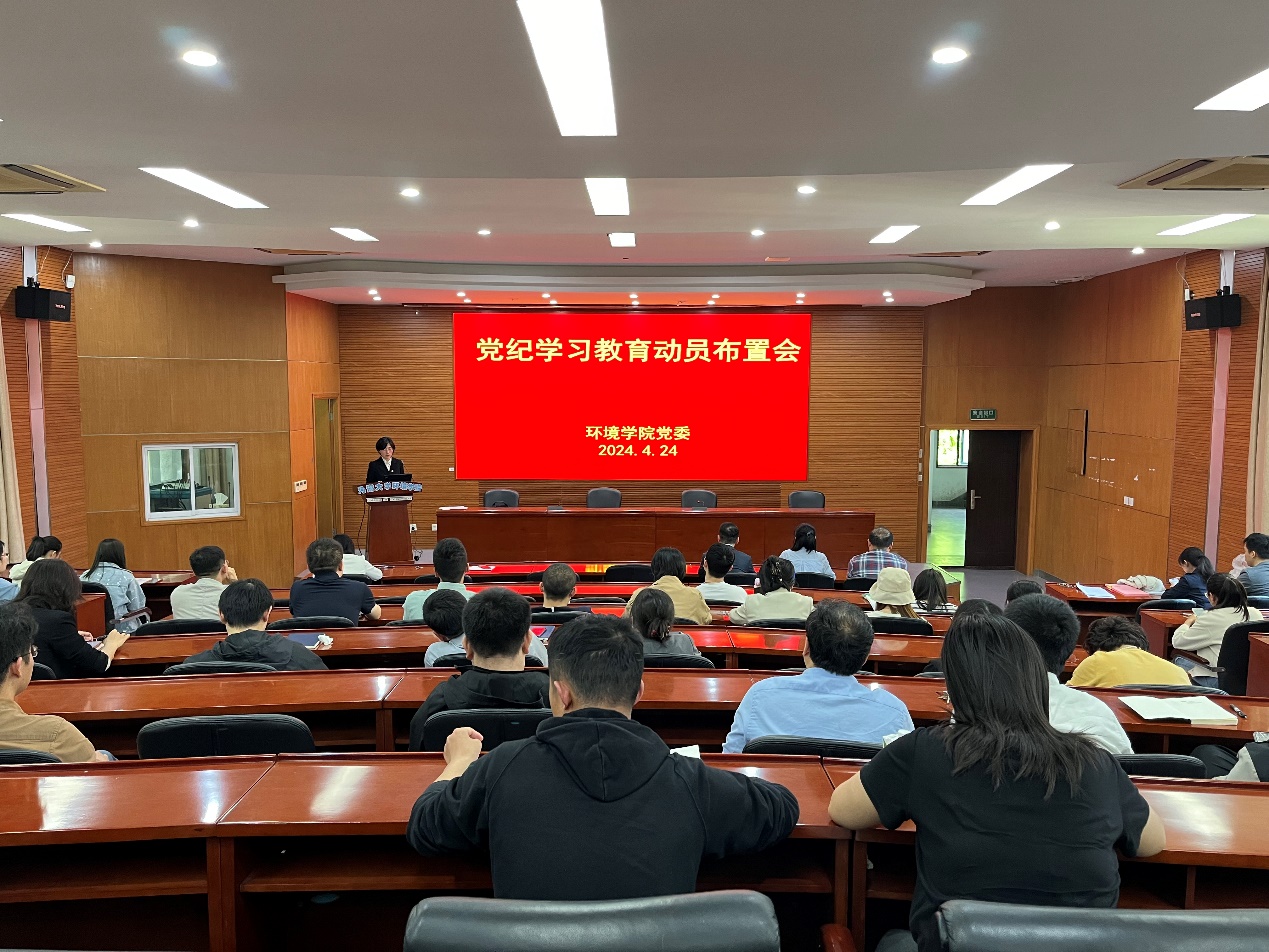 习近平总书记在二十届中央纪委三次全会上发表重要讲话强调,“以学习贯彻新修订的纪律处分条例为契机,在全党开展一次集中性纪律教育”。根据上级统一部署要求,学校自2024年4月至7月开展党纪学习教育。4月24日下午,国产视频 党委在水利馆301召开党纪学习教育动员部署会,全体党委委员、党支部书记、辅导员、办公室人员、师生党员代表参加了会议。学院党委书记王沛芳做动员讲话,其间全体党员学习了新修订的《中国共产党纪律处分条例》。