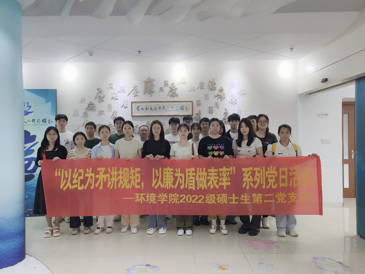 为了引导广大党员增强党性观念,加强校园廉洁文化建设,进一步提高支部党员的廉政意识,以廉洁文化助力育人正气,引导支部党员弘扬廉洁家风,传递清风正气,国产视频 2022级硕士生第一、二党支部于7月1日组织了一场别开生面的党纪学习教育主题党日活动。本次活动以“树学风、学条例、明党纪、强党性”“以纪为矛讲规矩,以廉为盾做表率”为主题,全体党员在支部书记的带领下,前往全国首家以“廉”字为主题的宝船社区文化体验馆,深入学习党的纪律和规矩,进一步提升党性修养。