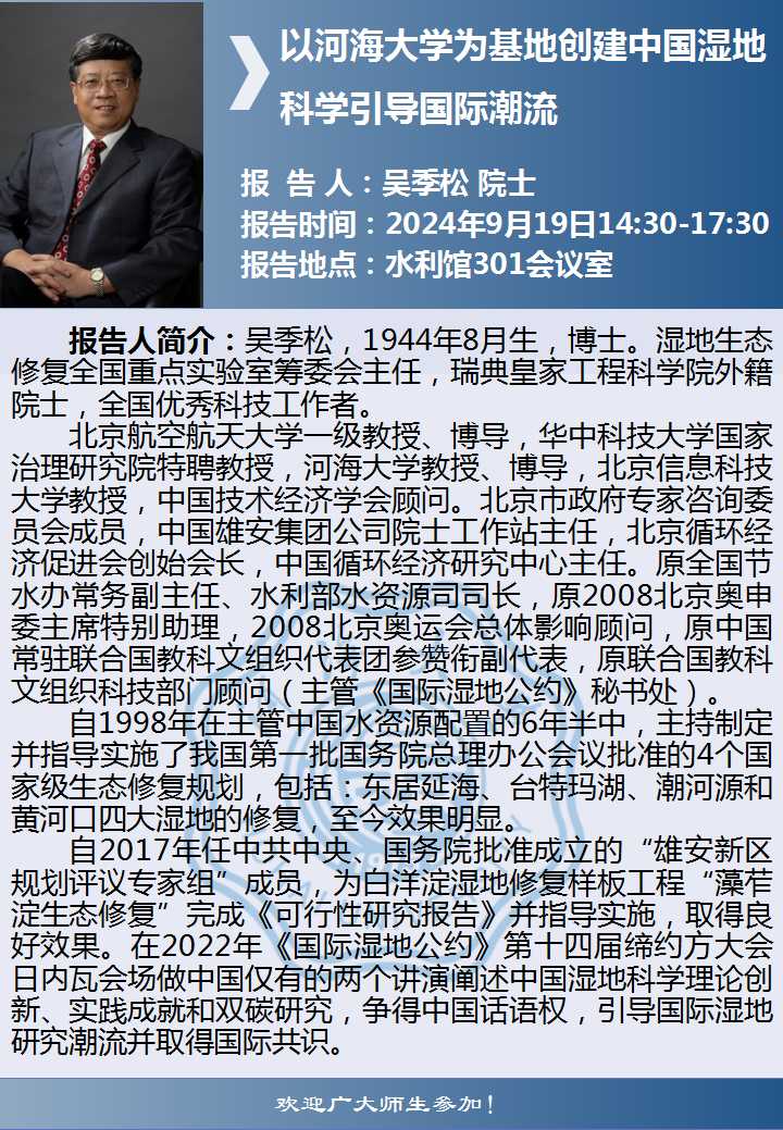 两山讲堂学术报告:以国产视频 为基地创建中国湿地科学引导国际潮流