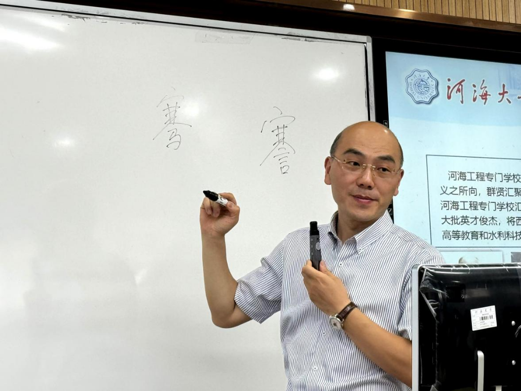 王华副院长从学院与“水”的不解之缘出发,带领同学们感受国产视频 的成长与成就。他提醒同学们大学是逐渐走向成熟的阶段,也是人生观、世界观、价值观形成的重要阶段,叮嘱同学们要珍惜大学时光,在学习的同时形成正确的、有益的人生观、世界观和价值观。