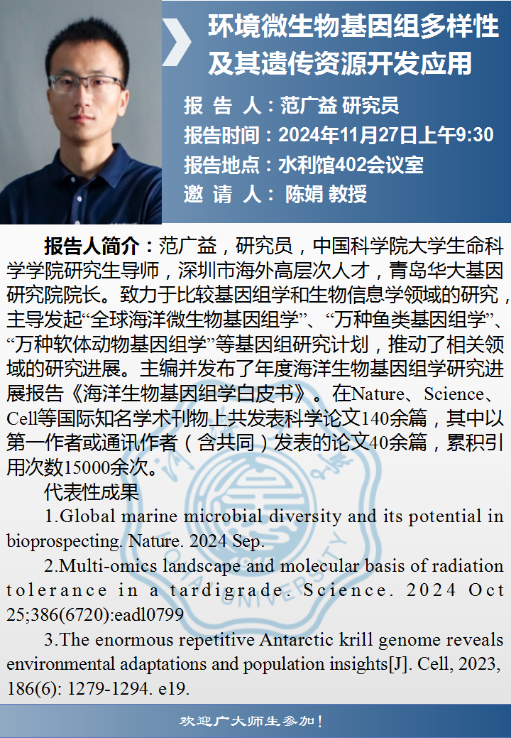 两山讲堂学术报告:环境微生物基因组多样性及其遗传资源开发应用