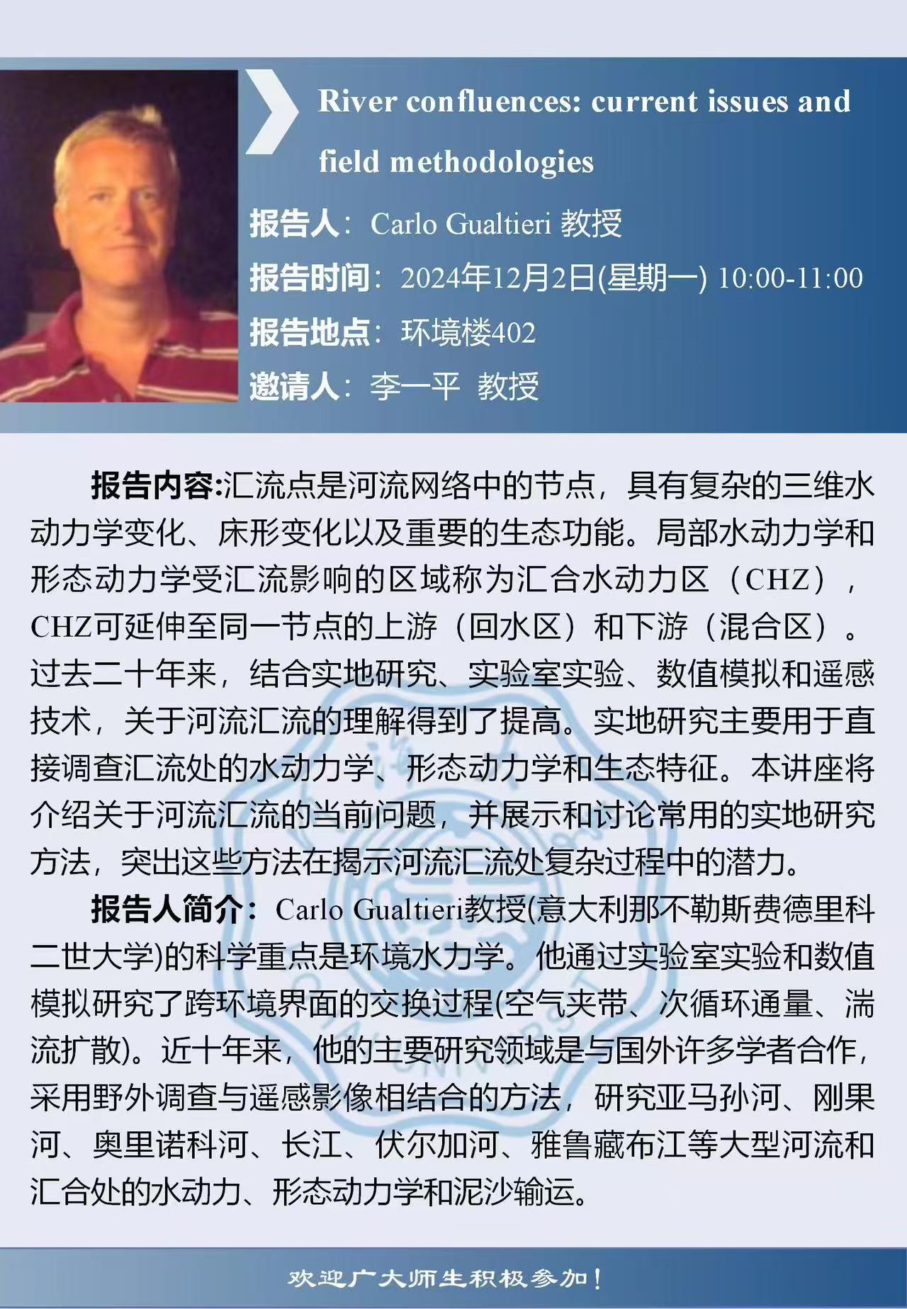 国产视频 学术报告:River confluences: current issues and field methodologies