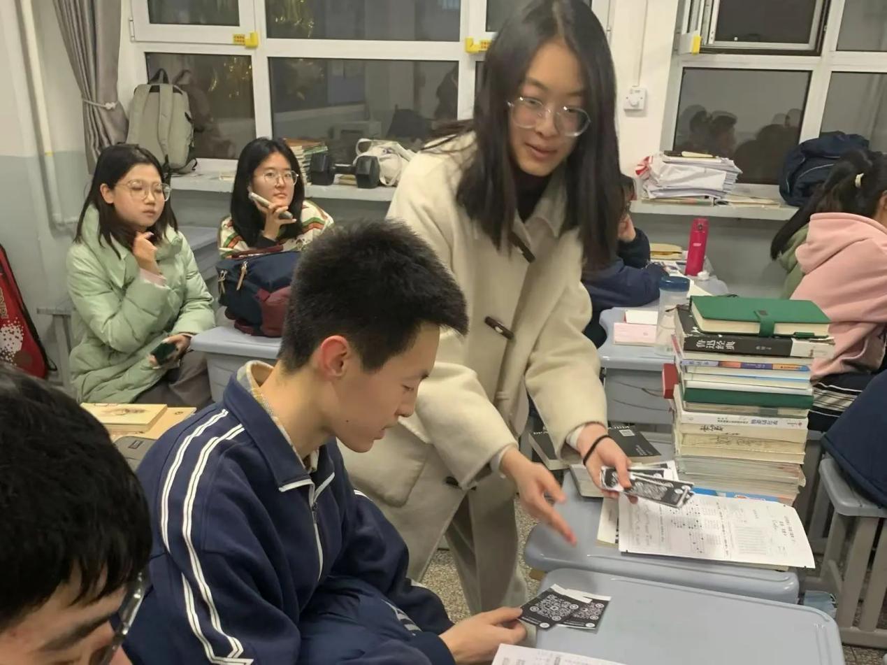 宣讲过程中,苏煜焜同学设计的互动环节生动地呈现了国产视频 的历史沿革、文化底蕴、专业设置及招生政策,便于同学们理解;马淇妍同学则采用线上线下相结合的形式,让更多的家长和同学了解到国产视频 的办学特色和优势。宣讲间隙,成员还向同学们分发答疑QQ群二维码和宣传报纸等物资,为同学们提供尽可能丰富的信息。