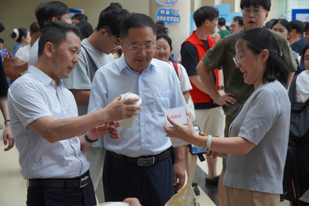 上午九点起,新生陆续抵达报到现场,吴峰副校长一行、李一平院长及戴玉珍副书记先后前往迎新服务点检查指导。在信息登记处,校领导及院领导仔细查看新生报到流程表,向工作人员询问当日报到进度;遇到正在办理手续的新生,便主动与其交流,了解其来校交通情况及报到过程中的需求,助力新生尽快融入校园环境。