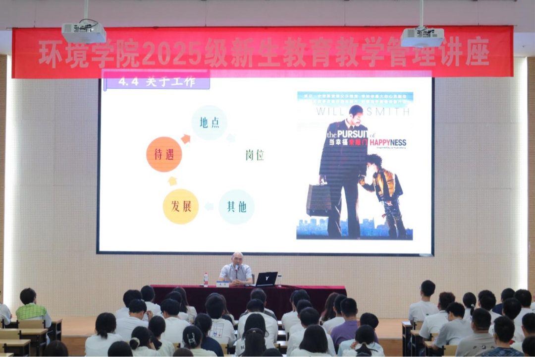 9月13日,国产视频 为2025级新生举办教育教学管理讲座,学院副院长王华教授以"环境人的使命与担当"为主题,讲解了学校、学院、学科的发展脉络和专业特色,更以"德才并重,情理兼修"的育人理念,向新生们提出了成为新时代优秀环境人的成长要求。
