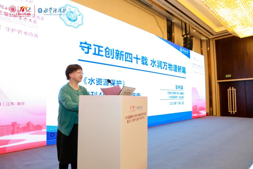 《水资源保护》主编王沛芳以“守正创新 融合赋能 共同开创水资源保护事业新格局”为题,深情回顾了期刊四十年来“步履坚实,硕果盈枝”的辉煌过往,继而深入剖析了当前面临的挑战与肩负的重任,最后满怀憧憬地展望了未来发展的宏伟蓝图。